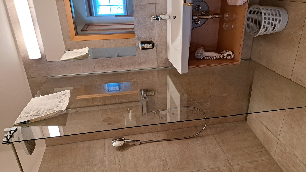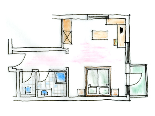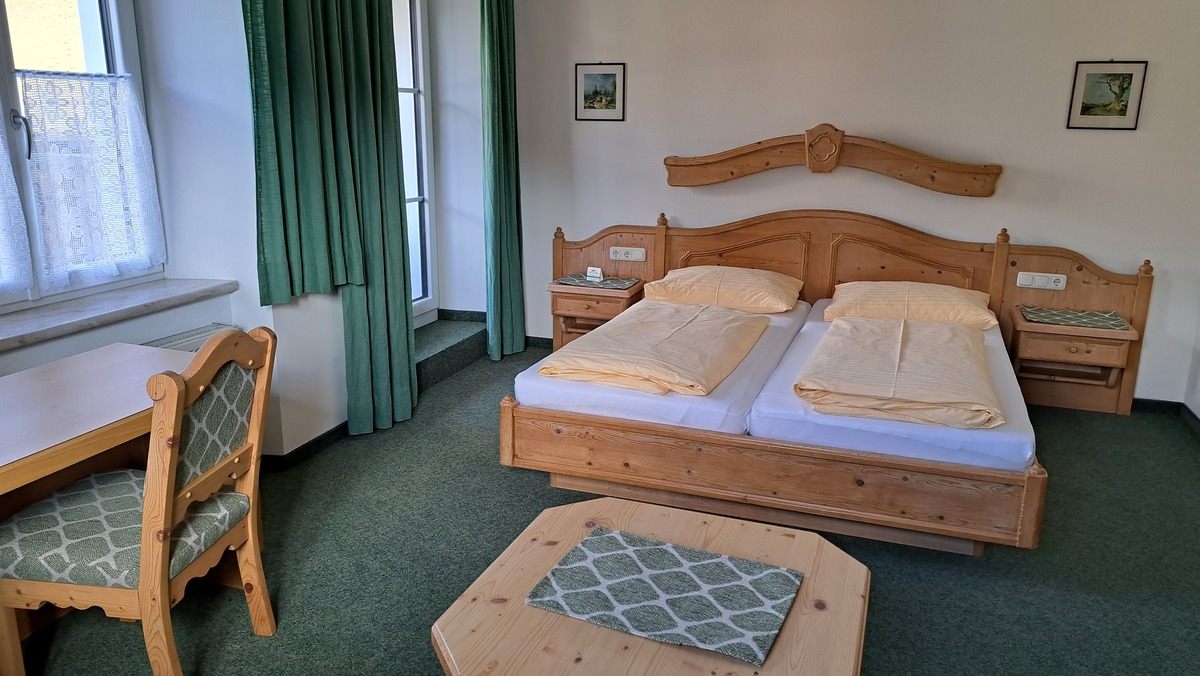 FAMILY SUITE, Spacious family-size Suite in sunny colours, noble natural wood with a living room and bed room together and a children`s bedroom with two single beds separated by the stairs , a large bathroom with shower, hairdryer, vanity mirror, free toiletries, toilet, 2 large Flat TVs, Wireless LAN, facing south with a view of the meadows and mountains. The suite is for parents with children aged 6 and over.