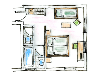 JUNIOR SUITE, very bright Junior Suite with high class fabrics in muted colours, noble natural wood, day light bathroom with shower and toilette, hairdryer, vanity mirror, free toiletries, large Flat TV, Wireless LAN, facing south with a view of the meadows and mountains