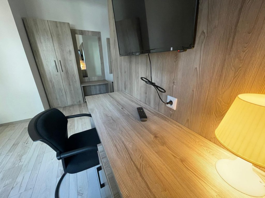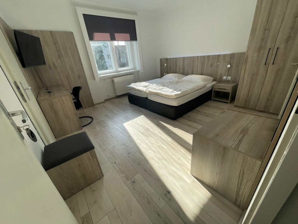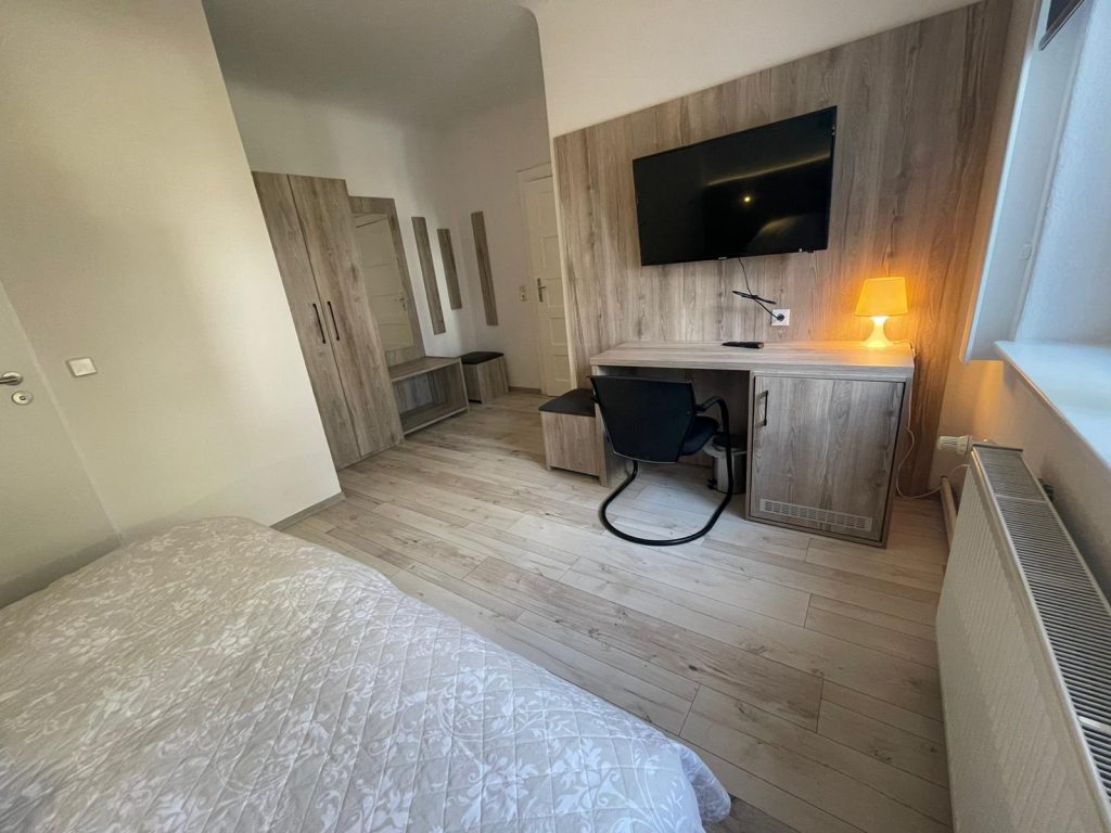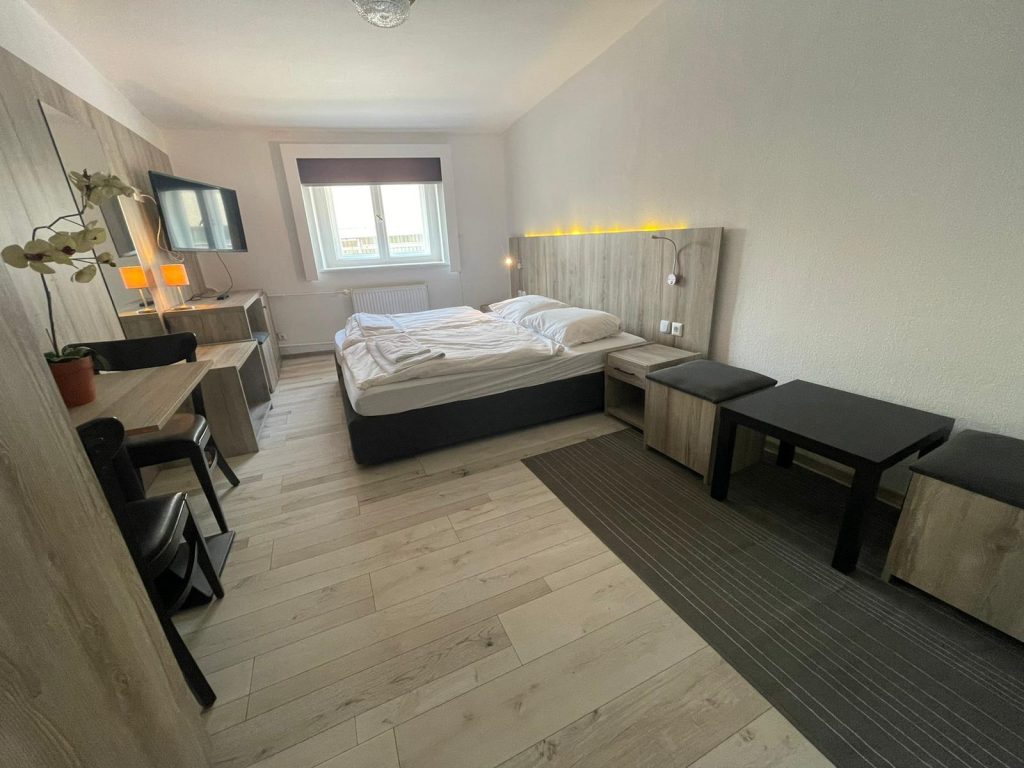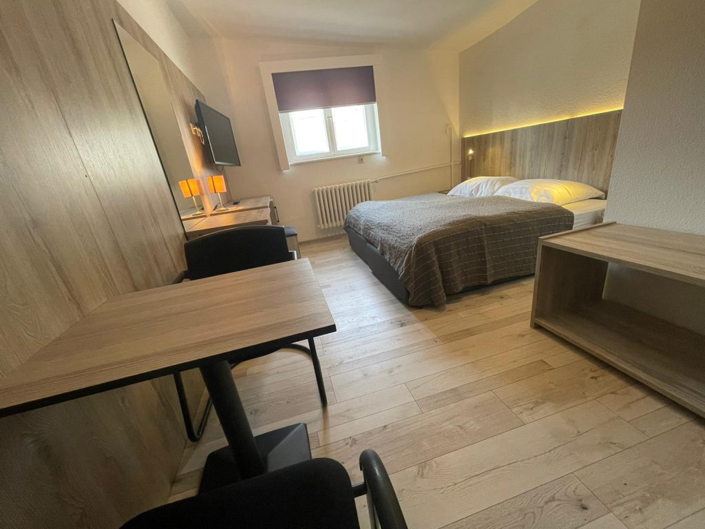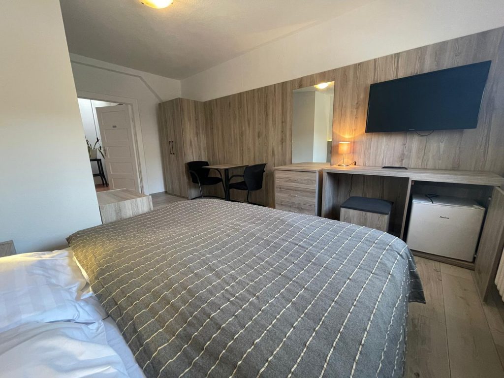Doppelzimmer mit Flachbild-TV, mit neuem Du/WC im Zimmer, Fön, Dusch-Waschgel, 15m² mit einem Doppelbett 160cm x200cm, Schrank und Schreibtisch, Kühlschrank, elektrisches Verdunklungsstore.