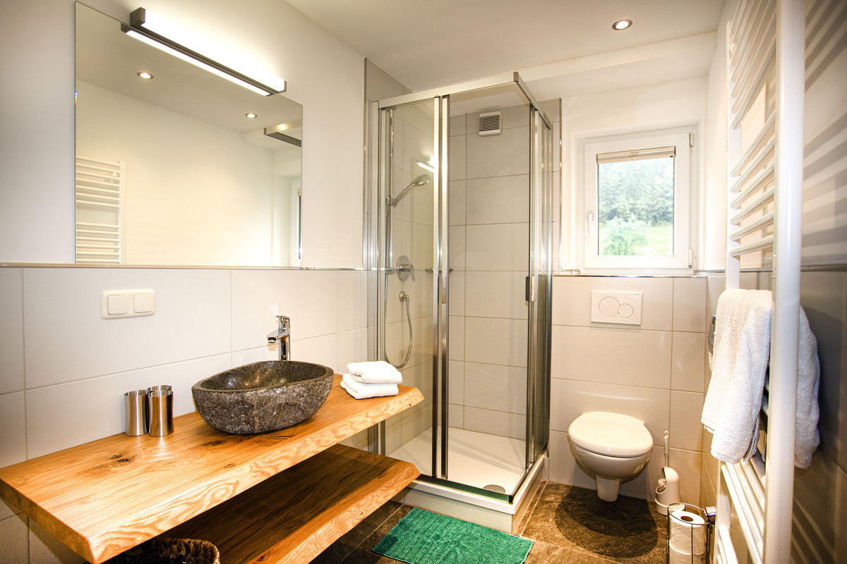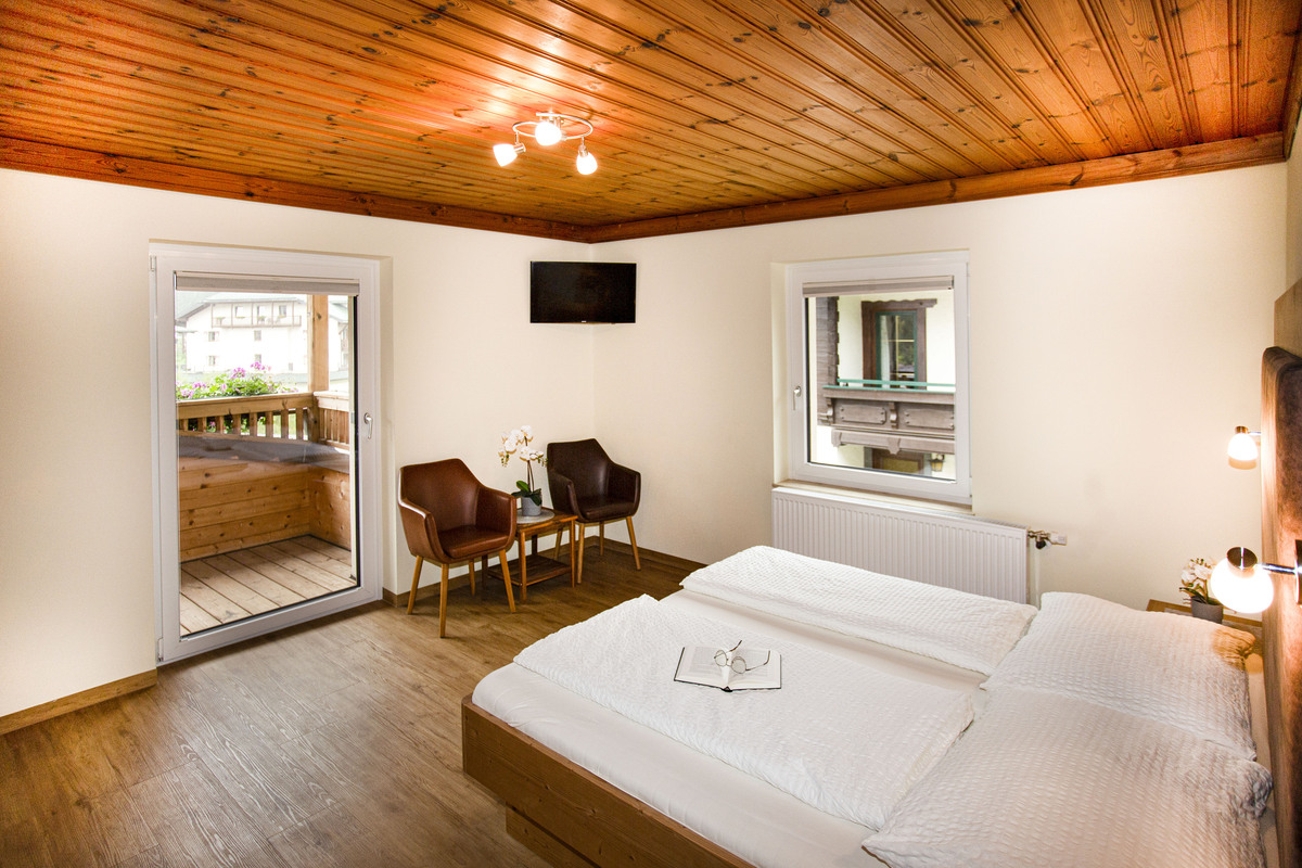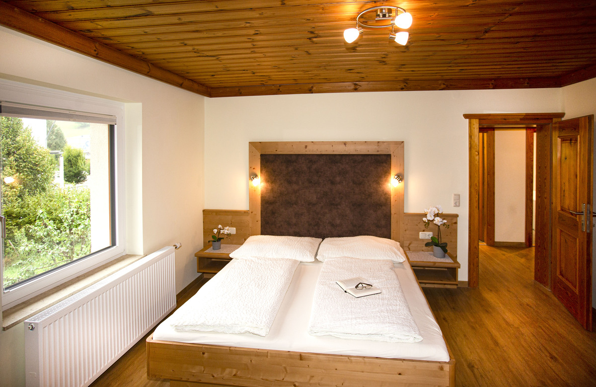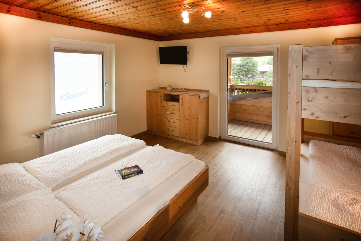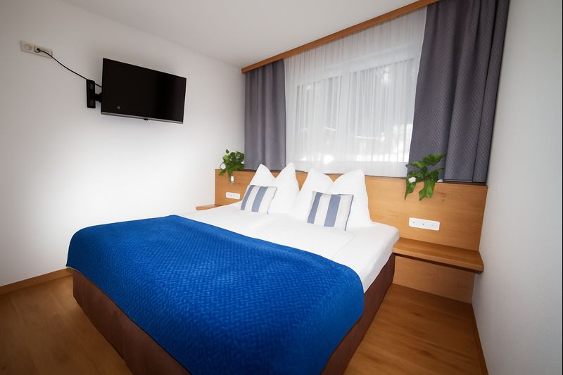 In unserem Appartement Palfenblick mit Balkon befindet sich 1 Schlafzimmer mit Doppelbett (180x200). Unser Schlafzimmer ist mit einem 80cm Flat-TV ausgestattet. 1 Badezimmer mit Dusche und WC, welches über das Schlafzimmer zugänglich ist.