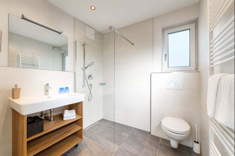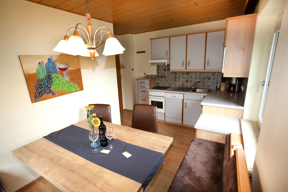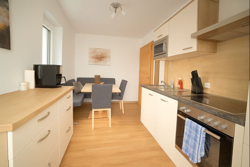 Die Küche befindet sich in diesem Appartement in einem abgetrennten Raum. Sie ist mit allem ausgestattet, das sie für den Urlaub benötigen, inklusive Kaffeevollautomat mit Kaffee für die gesamte Woche. Alle Räume sind mit Fußbodenheizung ausgestattet. Bettwasche und Handtücher und WLAN sind kostenlos vorhanden.