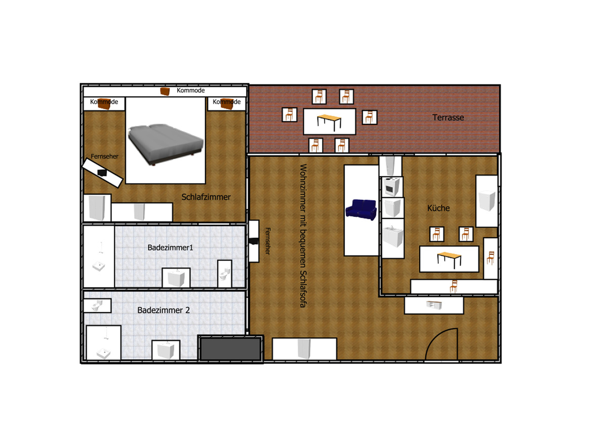 Im Wohnzimmer befindet sich eine gemütliche ausziehbare Couch (180x190) mit 143cm Smart TV und gratis Wlan In der Küche finden sie alles, was Sie für Ihren Urlaub benötigen, inklusive Kaffeevollautomat mit Kaffee für die ganze Woche. Bettwäsche ist kostenlos vorhanden. Gerne bieten wir Ihnen Brötchenservice bis vor die Wohnungstür an. (Brötchen gegen Gebühr).