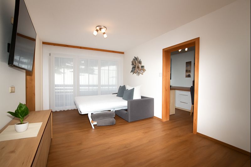 Unser Appartement Liftblick befindet sich im Erdgeschoss mit eigener ca. 20qm überdachten Terrasse. Das Appartement verfügt über ein Schlafzimmer mit Doppelbett, Badezimmer mit Dusche und WC, sowie Smart TV. Im großzügigen Wohnraum des Appartements befindet sich ein gemütliches Sofa-Bett (B:170*L:200cm) mit Smart TV und Zugang zu einem eigenen Badezimmer mit Dusche und WC. Das Sofa-Bett bietet ausreichend Platz für 2 Erwachsene oder Kinder zum Schlafen.