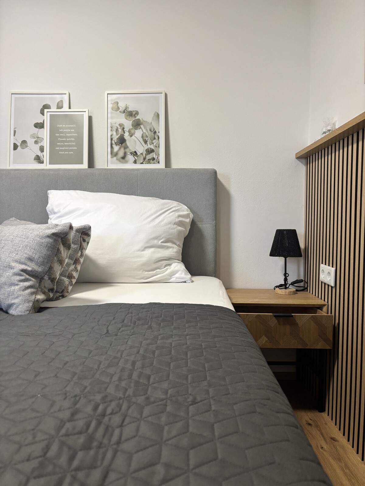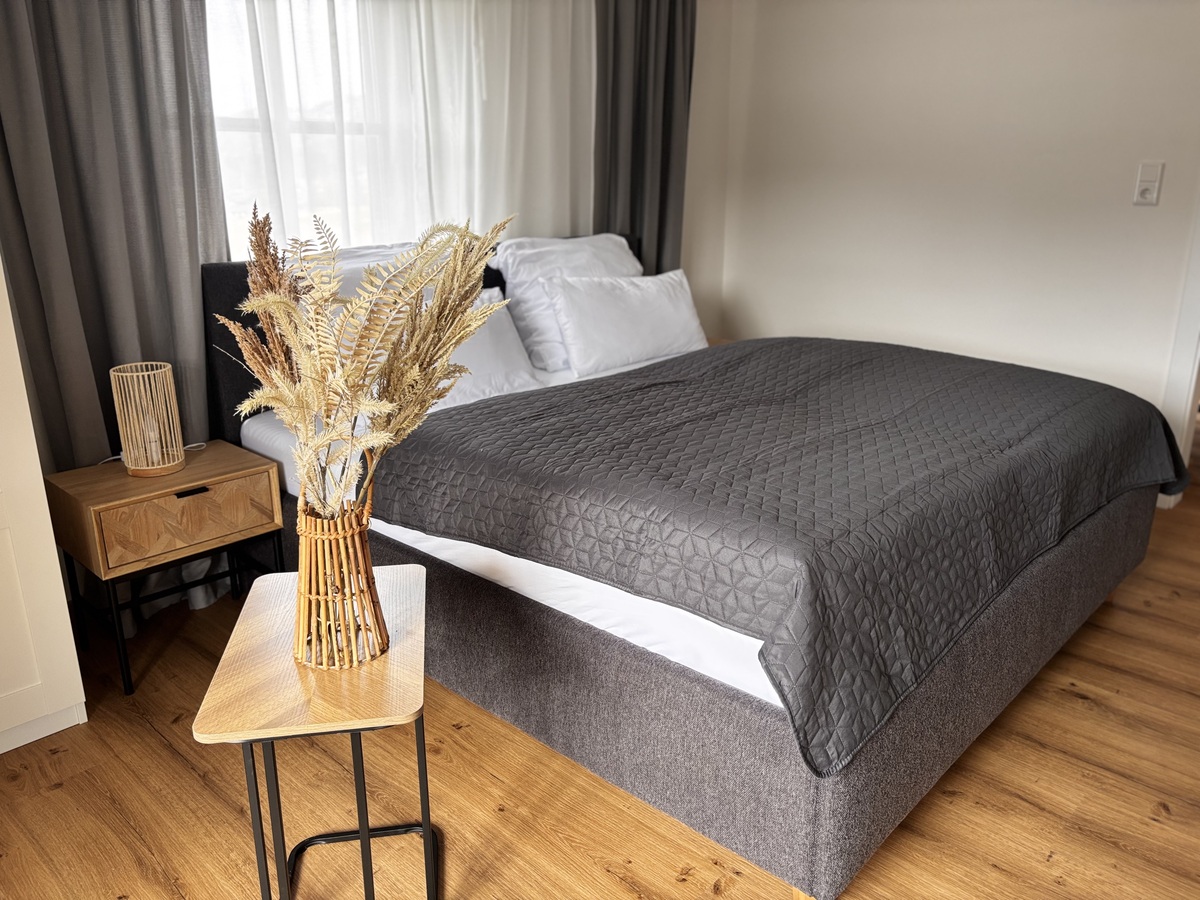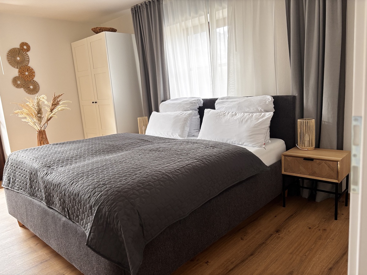 • Schlafzimmer mit Doppelbett (180x200 cm) und ein Sofa (90x190 cm) für zusätzlichen Komfort.