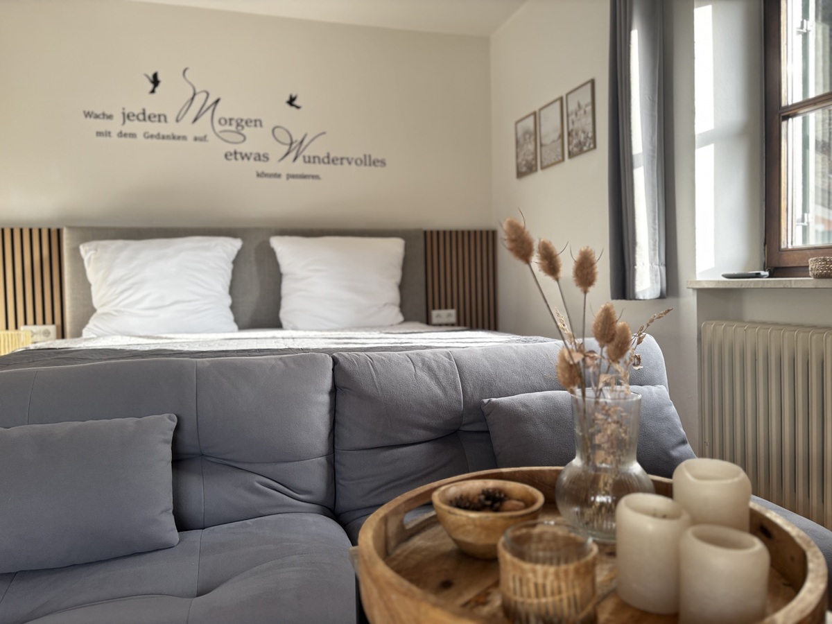 • Wohnzimmer mit Ausziehcouch 140x190CM und Essbereich