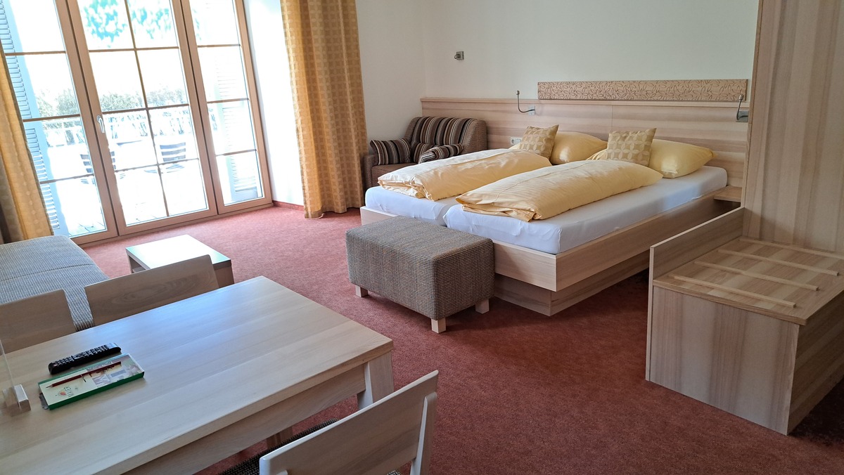 DOUBLE ROOM SUPERIOR, very bright double room superior with high class fabrics in muted colours, noble natural wood, bathroom with shower and toilette, hairdryer, vanity mirror, free toiletries, large Flat TV, Wireless LAN, facing south with a view of the meadows and mountains